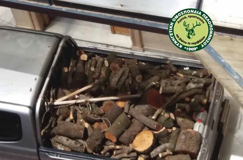 Την Τετάρτη 28 Ιουνίου 2017 οι Θηροφύλακες της Κυνηγετικής Ομοσπονδίας Πελοποννήσου Καγιούλης Δημήτριος, Καρπούζος Ιωάννης και Φούτρης Νικόλαος με περιοχή ευθύνης τους Κυνηγετικούς Συλλόγους Δημητσάνας, Βυτίνας και Τρίπολης αντίστοιχα, αξιοποιώντας σχετική καταγγελία για παράνομη υλοτομία εντόπισαν στην δασική θέση «Βίβιζα» του δάσους «Κώμης» ένα αγροτικό όχημα φορτωμένο με καυσόξυλα πρίνου άνευ άδειας υλοτομίας και δελτίου μεταφοράς.