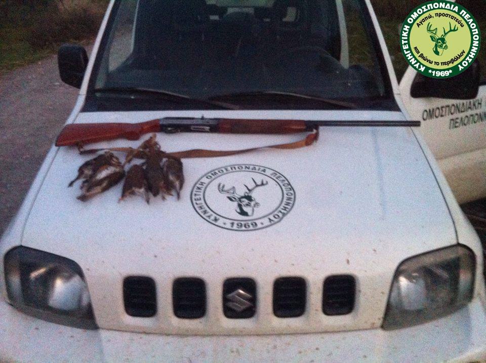 Την Τετάρτη 15 Φεβρουαρίου 2017 ο Θηροφύλακας της Κυνηγετικής Ομοσπονδίας Πελοποννήσου Κανελλάκος Ιωάννης με περιοχή ευθύνης του Κυνηγετικού Συλλόγου Σπάρτης κατά την άσκηση των καθηκόντων του στην περιοχή Κροκεών Λακωνίας εντόπισε ένα άτομο να ασκεί θήρα άνευ της προβλεπόμενης άδειας. Κατά τον έλεγχο δε διαπιστώθηκε ότι το κυνηγετικό του όπλο τύπου καραμπίνα μπορούσε να δεχθεί περισσότερα των τριών φυσιγγίων.