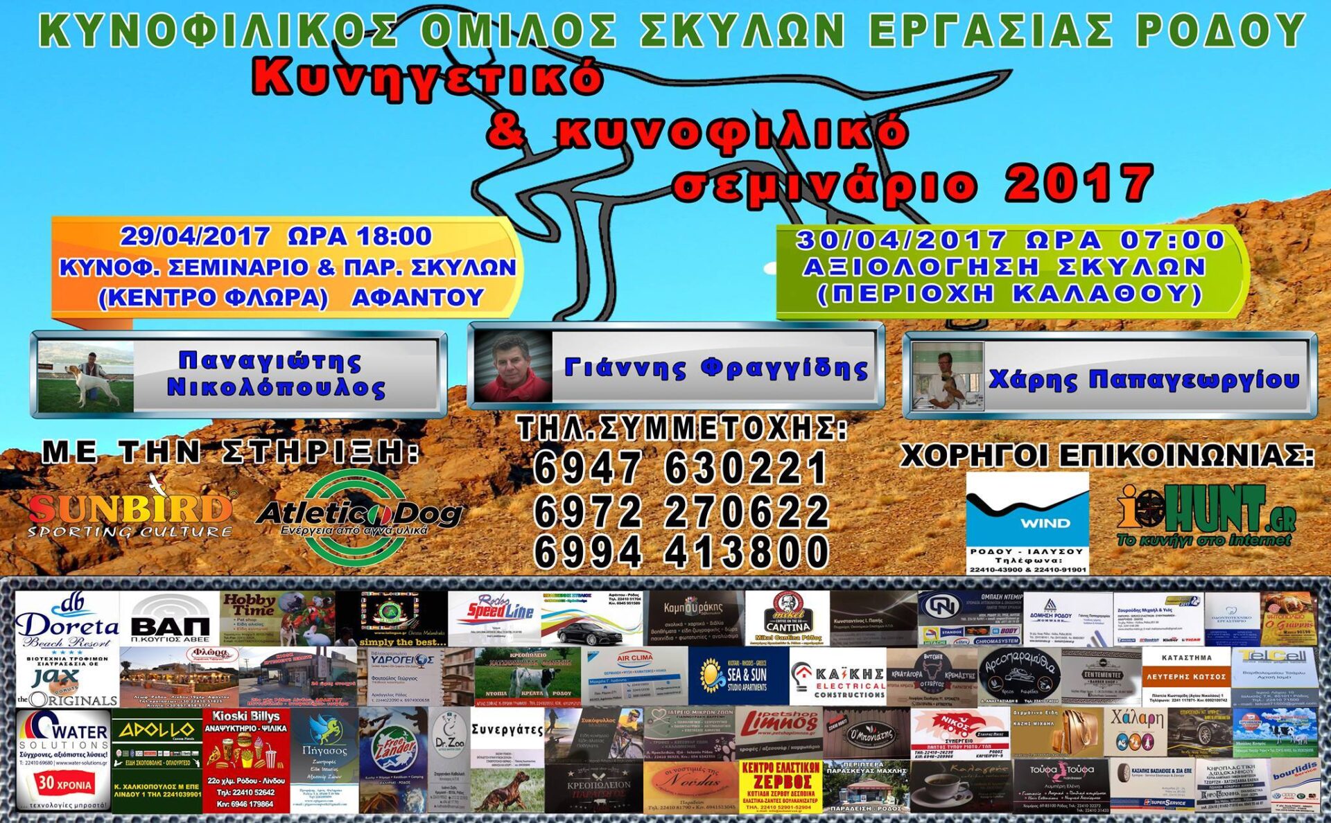 Ο Κυνοφιλικος Ομιλος Σκυλων Εργασιας Ροδου, διοργανώνει Κυνοφιλικό Σεμινάριο και παρουσίαση σκύλων, το Σάββατο 29 και την Κυριακή 30 Απριλίου.