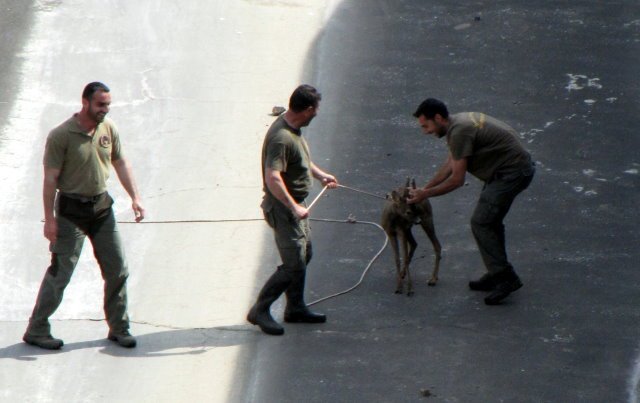 Ο Διευθυντής του Συγκροτήματος Αχελώου, κ. Δημήτρης Παπακαμμένος, με τους υπαλλήλους της ΔΕΗ του ΥΗΣ Καστρακίου έκαναν τις απαραίτητες ενέργειες για τον απεγκλωβισμό. Αυτό δεν κατέστη δυνατό και αμέσως ειδοποιήθηκε η Πυροσβεστική, το Δασαρχείο, η Φιλοζωϊκή οργάνωση, ο κυνηγετικός σύλλογος Αγρινίου και η Θηροφυλακή του νομού.