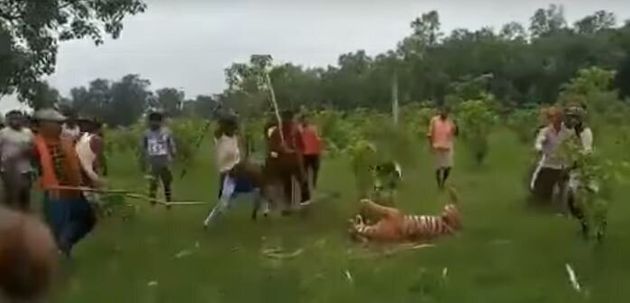 Οργισμένα σχόλια προκαλεί η αποκάλυψη βίντεο με χωρικούς στην Ινδία που εμφανίζονται να χτυπούν με ραβδιά, δόρατα και ματσέτες μια θηλύκια τίγρη μέχρι που αυτή πεθαίνει.