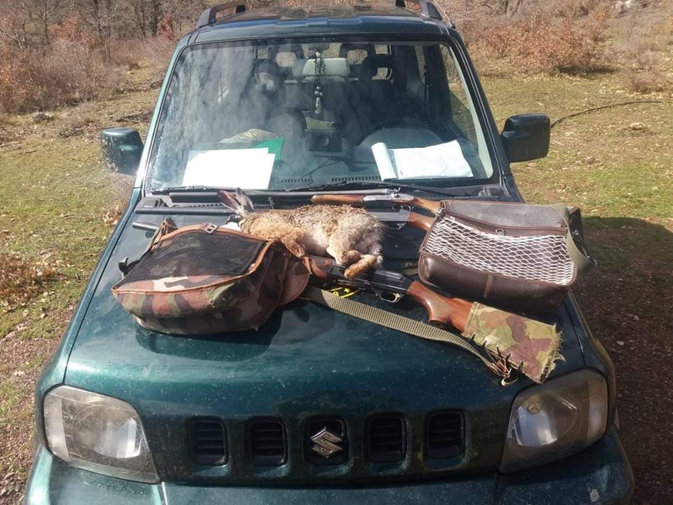 Εκεί, αντιλήφθηκαν κάποια άτομα τα οποία κρατούσαν κυνηγετικά όπλα και κυνηγούσαν με σκύλους δίωξης, λαγό. Τους παρακολούθησαν διακριτικά εξ αποστάσεως για αρκετή ώρα, διαπιστώνοντας ότι συνέχιζαν κανονικά το παράνομο (αφού το κυνήγι του λαγού είχε λήξει προ μηνός περίπου) κυνήγι τους.