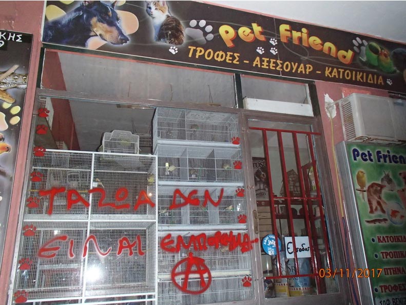 «Η πράξη μας δεν είναι τίποτα άλλο παρά ένας συμβολισμός αλλά και μια προειδοποίηση» αναφέρουν σε ανακοίνωσή τους οι «Αντισπισιστριες/Αντισπισιστες» – Διαμαρτύρονται για «χυδαιότητα» πίσω από το εμπόριο «ζωντανών και δολοφονημένων ζώων»
