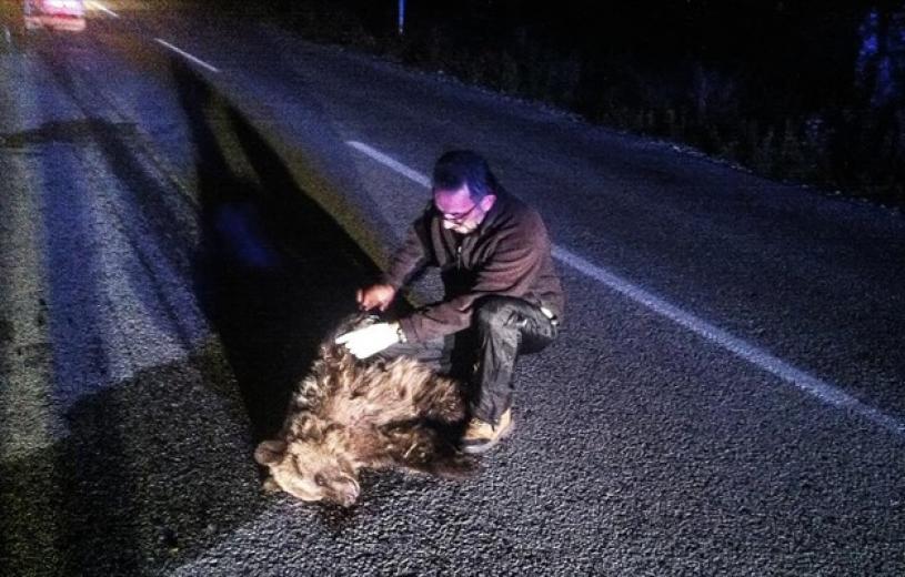 Μετά το δυστύχημα η ΟΑΕ παρέμεινε στο σημείο καθώς η μητέρα της αρκούδας βρισκόταν στην περιοχή και αναζητούσε το μικρό της.
