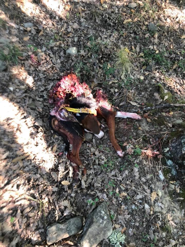 ΝΕΟ, κρούσμα θανατηφόρας επίθεσης λύκων σε άλλο ένα κυνηγόσκυλo σημειώθηκε το Σάββατο 15/09/18 στο χωριό Ζούζουλη δίπλα στο Επταχώρι Καστοριάς σε κυνήγι λαγού. Αυτή την φορά το “λαχείο” έπεσε στον συνάδερφο Παντελή Κοθρά να θρηνήσει τον αγαπημένο του τετράποδο συνεργάτη, φίλο και σύντροφο, θύμα στην ανεξέλεγκτη πλέον μανία και εθισμό των λύκων στο σκυλίσιο κρέας !!!