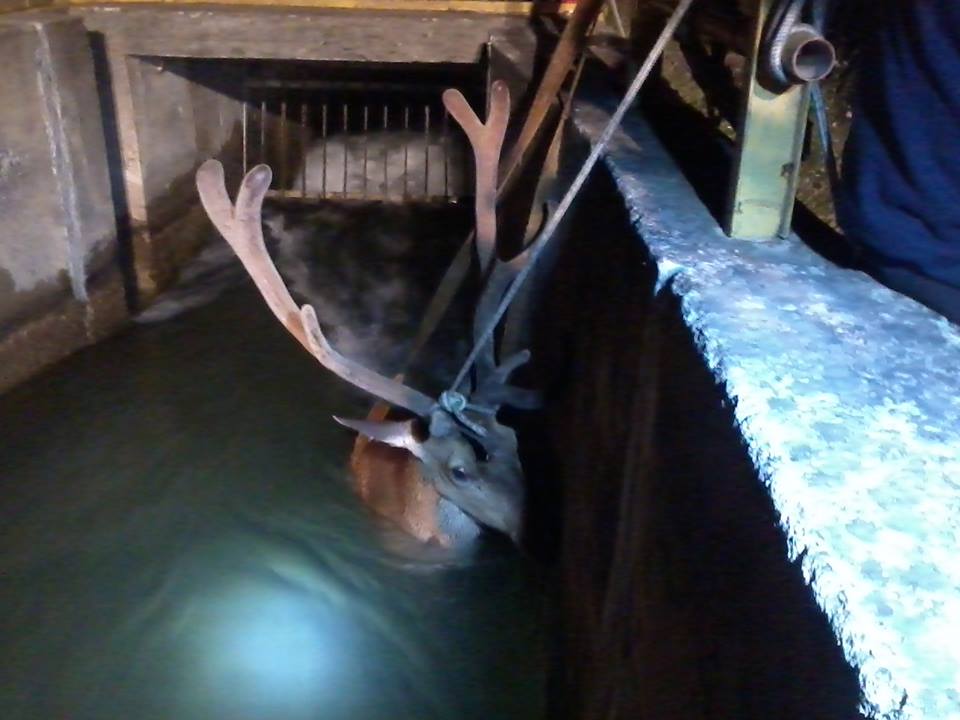 Στις 16 Μαίου 2013 ο κ. Ζυγούρης Χρ., τηλεφώνησε στην Ομοσπονδιακή Θηροφυλακή για να αναφέρει ότι βρήκε ένα αρσενικό ελάφι μέσα στο κανάλι του Μόρνου κοντά στο στρατόπεδο της Αυλώνας και κινδύνευε να πνιγεί. Αμέσως ενημερώθηκε η Π.Υ. Οινοφύτων, η ΕΥΔΑΠ και διασωστική ομάδα. Επίσης στο χώρο έφτασαν αμέσως και δυο ομοσπονδιακοί θηροφύλακες. Τελικά μετά από μια σύντομη επιχείρηση το ελάφι βγήκε από το κανάλι σώο και αβλαβές. Όπως ανάφερε ο κ. Ζυγούρης το ελάφι το κυνηγούσε λύκος και στην προσπάθειά του να ξεφύγει έπεσε στο κανάλι.