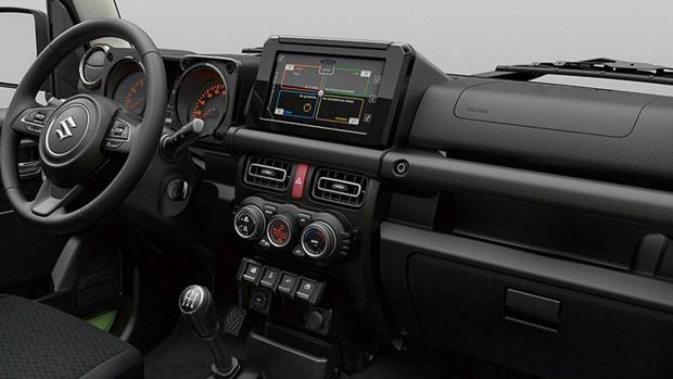 Και αν η Suzuki δεν μετακινήθηκε ιδιαίτερα όσον αφορά την καροσερί, συνέβη το αντίθετο στην καμπίνα που τα γηρατειά την είχαν αλώσει αλύπητα. Κι εδώ βέβαια, η λέξη «αγροτικό» ερμηνεύει με χαρακτηριστική ακρίβεια την εικόνα, αλλά το Jimny παίρνει μια δυνατή νότα μοντερνισμού με την εμφάνιση μιας οθόνης αφής πάνω από το ταμπλό.