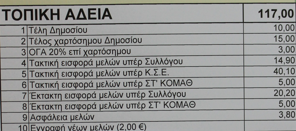 ΤΙΜΕΣ : ΤΟΠΙΚΗ 121 €, ΠΕΡΙΦΕΡΕΙΑΚΗ 141 €, ΓΕΝΙΚΗ 171 €.