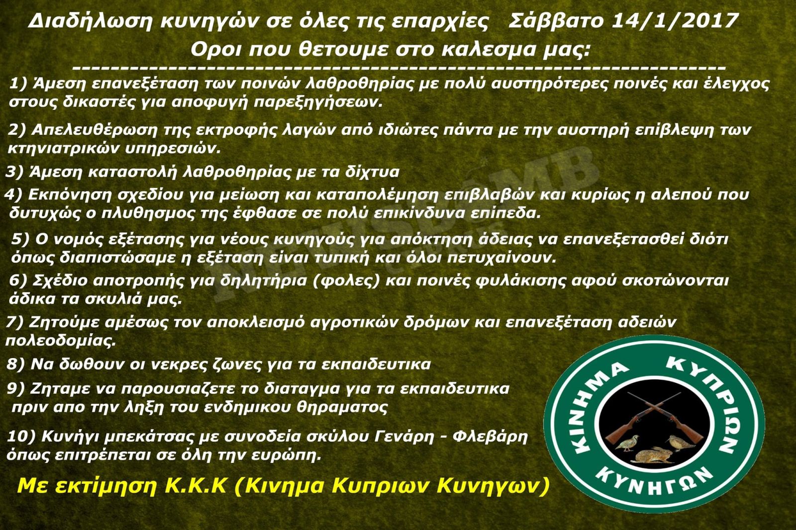 Το Κίνημα Κυπρίων Κυνηγών με ανακοίνωση του ενημερώνει για τις κινητοποιήσεις των Κύπριων κυνηγών και τι ακριβώς ζητούν από τις αρμόδιες αρχές.
