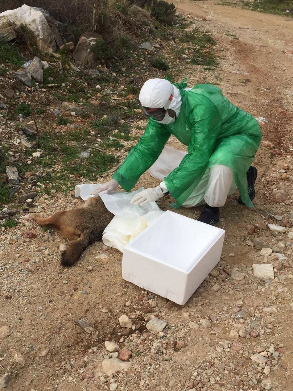 Την Τρίτη 16 Φεβρουαρίου η Περιφέρεια Αττικής (ΥΠΑΑΤ) ενημέρωσε τον Θηροφύλακα της Δ’ΚΟΣΕ Ευάγγελο Ρωμανό για μια νεκρή αλεπού στην περιοχή της Πεντέλης. Αμέσως ο Ομοσπονδιακός Θηροφύλακας πήρε τον απαραίτητο ειδικό εξοπλισμό από την Περιφέρεια και περισυνέλεξε την νεκρή αλεπού την οποία και μετέφερε στην κτηνιατρική υπηρεσία στην Αγία Παρασκευή. Η Ομοσπονδιακή Θηροφυλακή έχει ενεργό ρόλο στο πρόγραμμα επιτήρησης της λύσσας στην Ελλάδα.