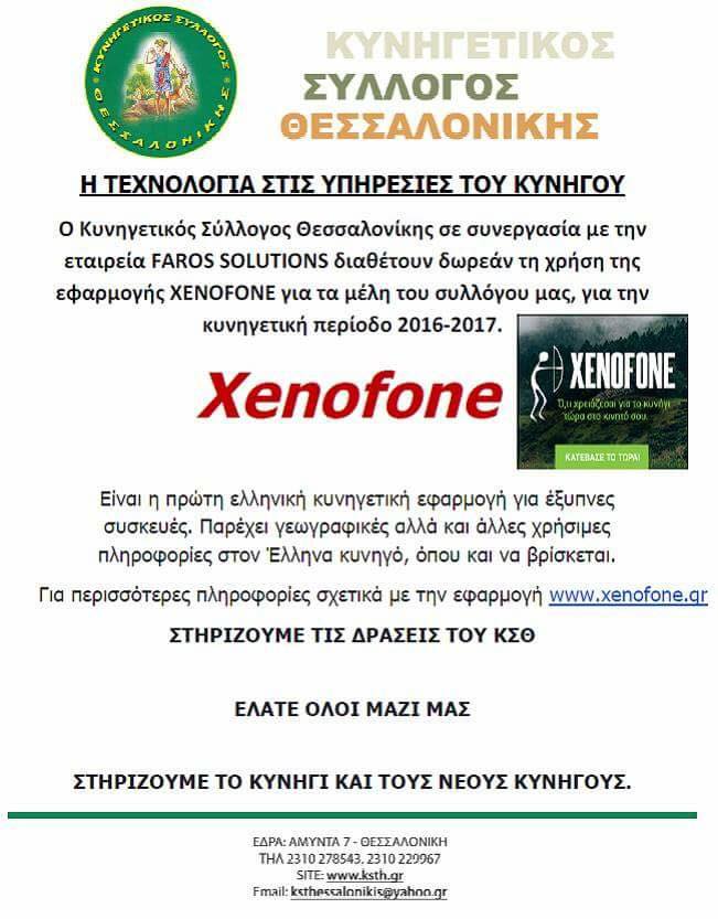 Ο ΚΣ Θεσσαλονίκης στην προσπάθεια του να εντάξει την νέα τεχνολογία στο κυνήγι δίνει την εφαμογή ΞΕΝΟΦΩΝ δωρεάν σε κάθε μέλος του. Για περισσότερες πληροφορίες επικοινωνήστε στο 2310 – 278543.
