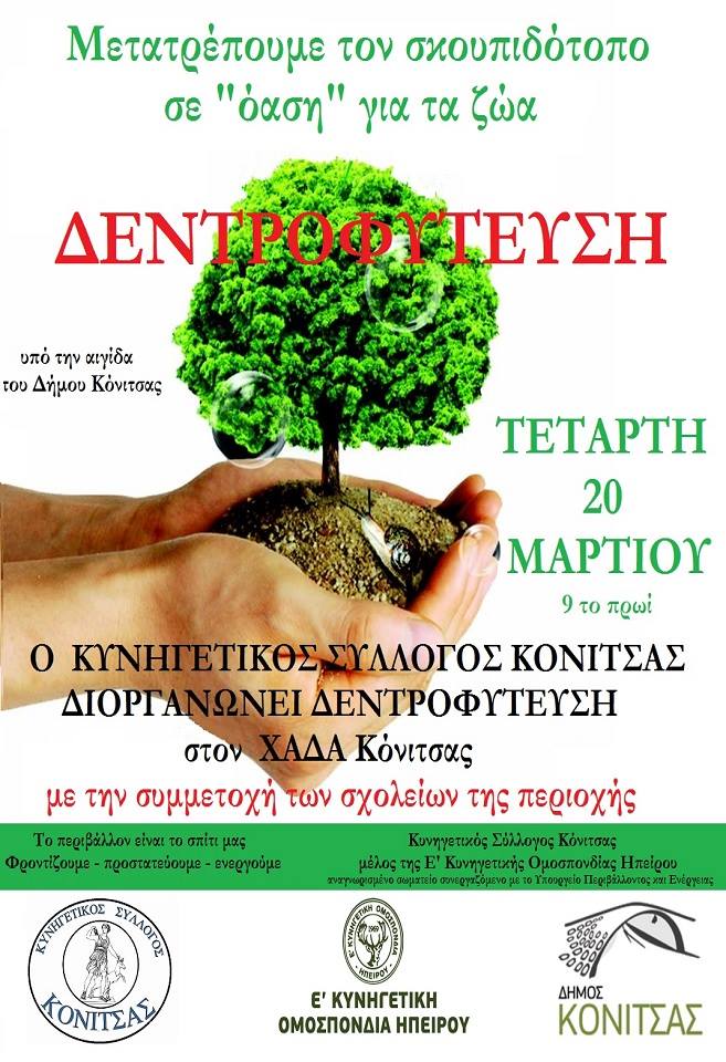 Η δεντροφύτευση είναι πρωτοβουλία και διοργάνωσης του Δ.Σ. του Κυνηγετικού Συλλόγου Κόνιτσας, και θα πραγματοποιηθεί με την συμμετοχή των μαθητών των τοπικών σχολείων.