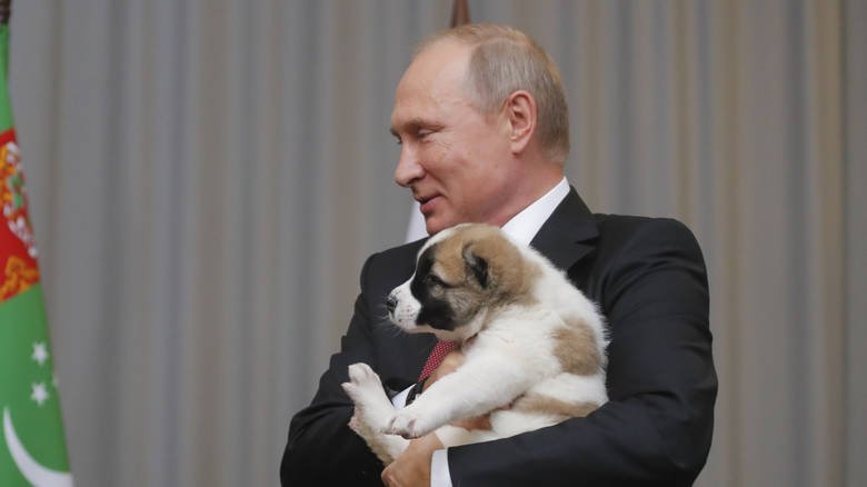ένα πανέμορφο Ακίτα, σε μία από τις αίθουσες του Κρεμλίνο. Σύμφωνα με το Reuters, το όνομα του σκύλου είναι Yume. Κανείς άλλωστε δεν μπορεί να ξεχάσει την τρομάρα της καγκελαρίου της Γερμανίας, Άνγκελα Μέρκελ, μπροστά στο θέαμα του τεράστιου Λαμπραντόρ του Πούτιν να την πλησιάζει κατά την διάρκεια συνάντησής τους στο Σότσι.