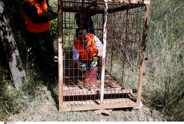 Στο σημείο κατέφθασε και ομάδα του κυνηγετικού Συλλόγου Θεσσαλονίκης με παγίδες ώστε να καταφέρουν να πιάσουν τα δύο αγριογούρουνα.