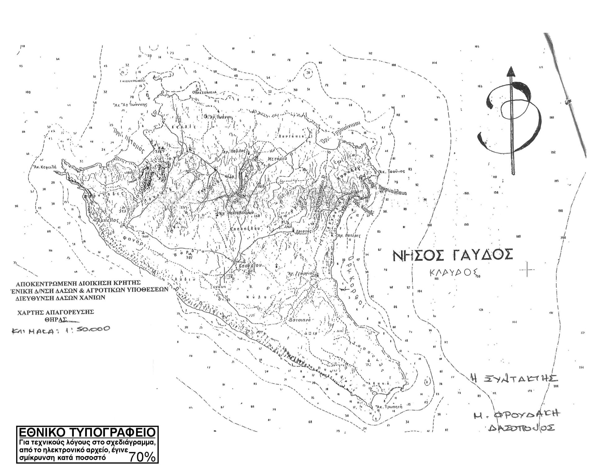 Τα όρια όλης της έκτασης της Νήσου Γαύδου αποτυπώνονται σε χάρτη κλίμακας 1:50.000. Η Δ/νση Δασών Χανίων παρακαλείται για την έκδοση της σχετικής Δασικής Απαγορευτικής Διάταξης θήρας, μετά τη δημοσίευση της παρούσας απόφασης στην Εφημερίδα της Κυβερνήσεως.