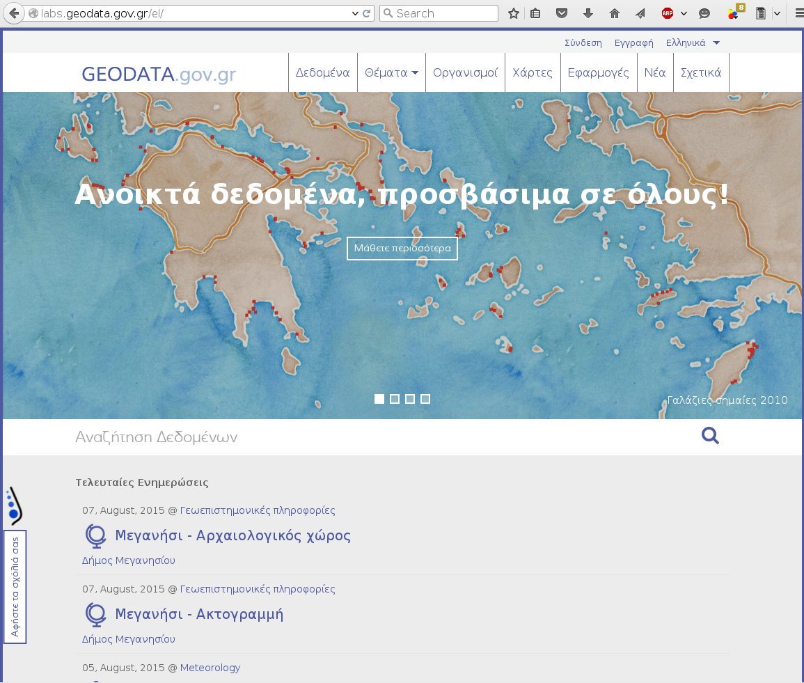 Εδώ και μερικά χρόνια, λειτουργούσε στο διαδίκτυο η ιστοσελίδα http://geodata.gov.gr/ στην οποία οι πολίτες μπορούσαν να βρούνε ιδιαίτερα χρήσιμες γεωχωρικές πληροφορίες και κυρίως χάρτες περιβαλλοντικού ενδιαφέροντος.