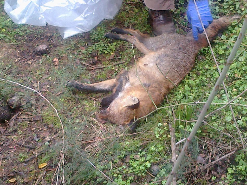 Η μία από τις δύο αλεπούδες ήταν μέσα σε ρυάκι με τρεχούμενο νερό και φαινότανε να πέθανε πριν από περίπου 15 ημέρες και άρχισε η σήψη της, ενώ η άλλη έδειχνε ότι πέθανε το πολύ πριν 5 μέρες και ήταν σαφώς σε καλύτερη κατάσταση.