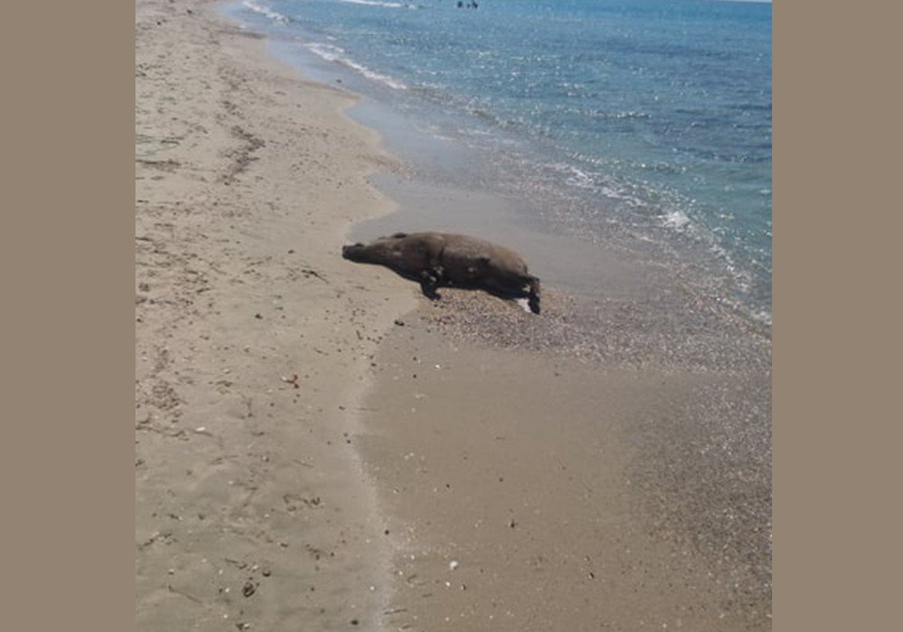 Το αγριογούρουνο, άγνωστο πως, βρέθηκε στην παραλία και κατέληξε μέσα στη θάλασσα, κολύμπησε μία μεγάλη απόσταση και πνίγηκε