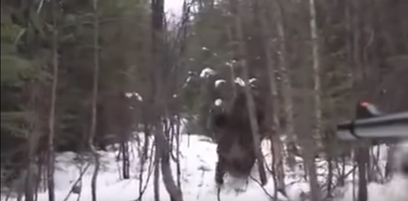 Εξαιρετικό πλάνο από ένα πολύ κοντινό και επικίνδυνο τουφέκισμα αγριόχοιρου. Τα σκυλιά έχουν το γουρούνι σε στάμπα,ο συνάδελφος περιμένει εκεί κοντά και το γουρούνι επιχειρεί έξοδο κυνηγώντας τα σκυλιά, πέφτοντας ωστόσο κυριολεκτικά στην μπούκα της κάννης !!!