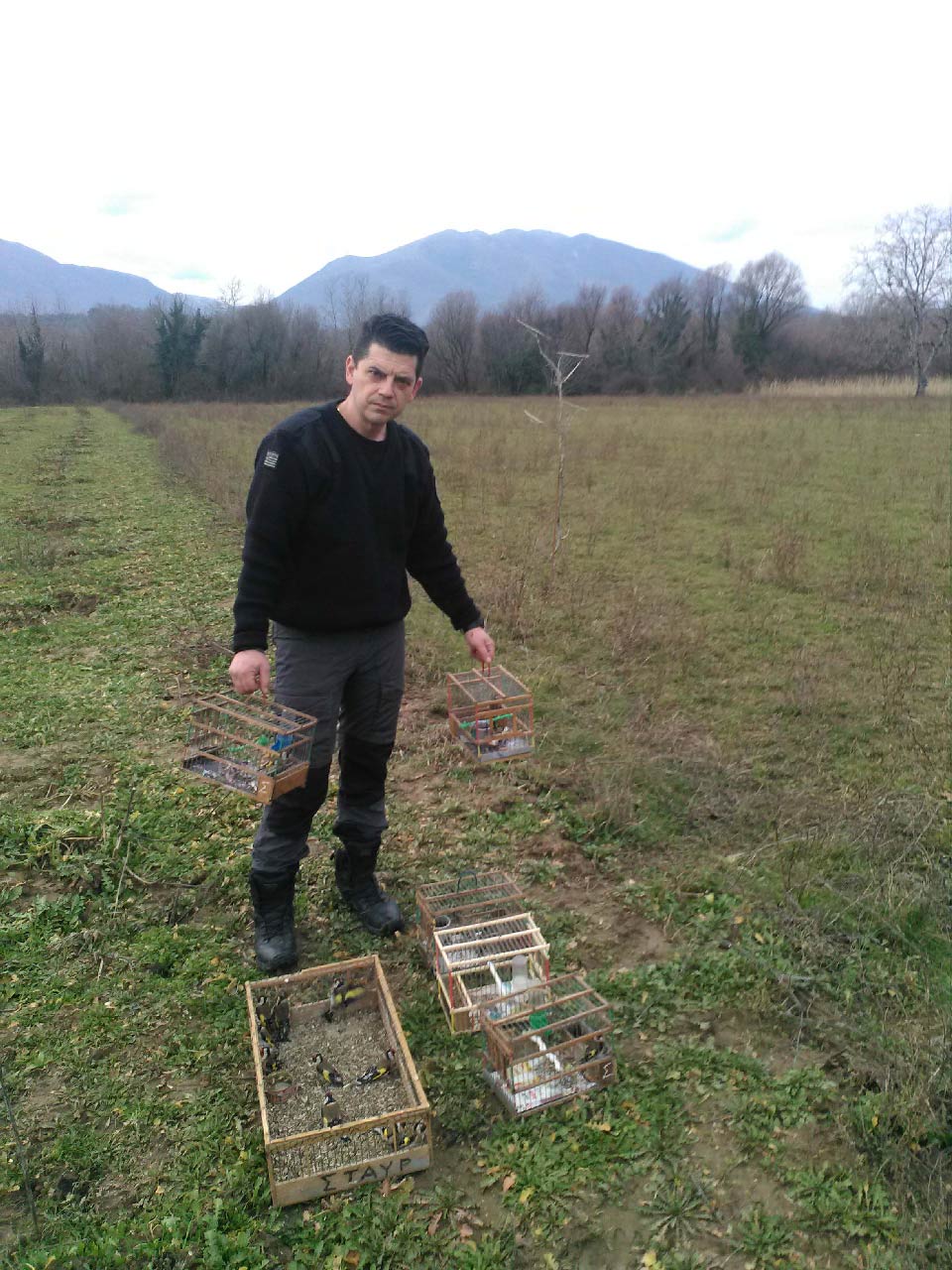 Όπως διαπιστώθηκε στις αυτοσχέδιες παγίδες είχαν ήδη εγκλωβιστεί δέκα (10) άγρια ωδικά πτηνά (καρδερίνες).