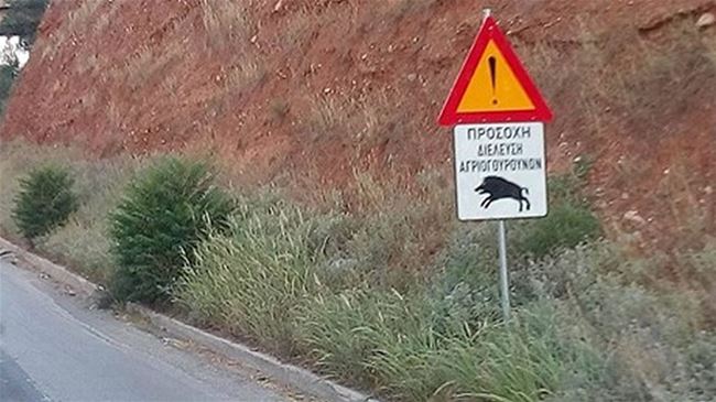 Όσο και αν φαίνεται απίστευτο, στην περιφερειακή οδό οι οδηγοί συναντούν πινακίδες που προειδοποιούν για διέλευση αγριογούρουνων.