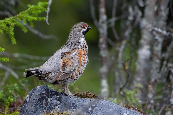 Ζει σε μέρη που υπάρχουν μικτά δάση από κωνοφόρα δέντρα κατά προτίμηση σε περιοχές με ερυθρελάτες και βεβαίως και στα λιβάδια των αλπικών ζωνών. Επίσης μπορούμε να την συναντήσουμε και σε χαμηλές ζώνες των βουνών όπου υπάρχουν προσβάσεις σε ποτάμια η ρυάκια .Ο βασικός της όμως βιότοπος είναι τα δάση κωνοφόρων που χρησιμεύουν για κάλυψη και για τροφή τον Χειμώνα τα φυλλώδη δέντρα ειδικά.Πουλί που το μέγεθος του φτάνει περίπου τα 35 εκατοστά .
