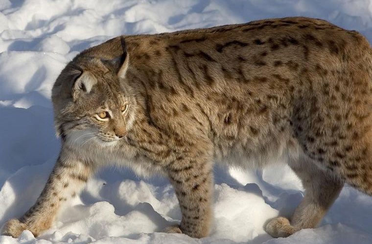 Ψηλά πόδια πυκνό τρίχωμα επιτρέπει στον λύγκα να κυνηγάει με επιτυχία μέχρι και με μισό μέτρο χιόνι, όταν ξεπεράσει το ένα μέτρο το χιόνι αποτραβιέται σε περιοχές με λιγότερο χιόνι.