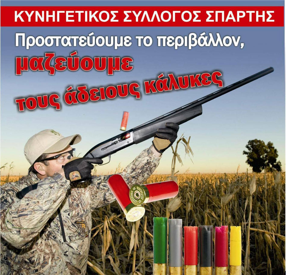 Μετά τη μεγάλη επιτυχία που γνώρισε η περυσινή δράση «Προστατεύουμε το περιβάλλον, μαζεύουμε τους άδειους κάλυκες», ο Κυνηγετικός Σύλλογος Σπάρτης επανέλαβε και φέτος το εγχείρημα, επιβεβαιώνοντας για μία ακόμα φορά ότι ο κυνηγός είναι ο καλύτερος προστάτης της φύσης και μπορεί έμπρακτα να λειτουργεί υπέρ του περιβάλλοντος, υπέρ του χώρου δράσης του.