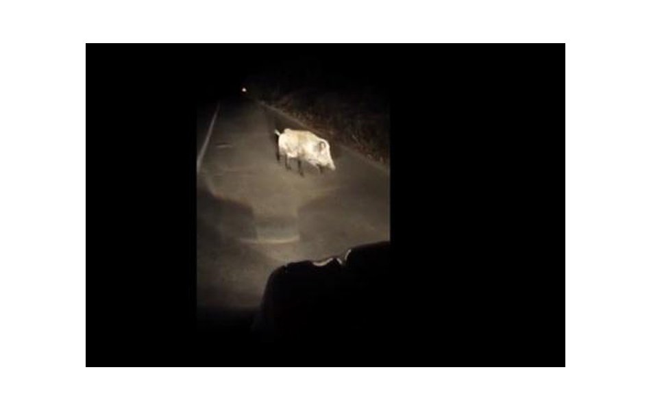 Βράδυ και το άγριο ζώο, δεν είχε κανένα δισταγμό να βγει με άνεση στον κεντρικό δρόμο. Μάλιστα δεν έδειχνε καθόλου ενοχλημένο από την παρουσία των οχημάτων και από τα φώτα που έπεφταν πάνω του…