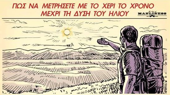 Δείτε στην εικόνα που αολουθεί πως μπορούμε να μετρήσουμε με το χέρι μας το χρόνο που απμένει μέχρι τη δύση του ηλίου.