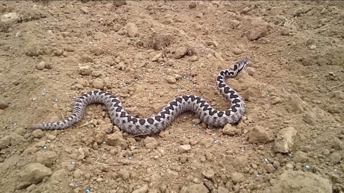 ΠΡΟΣΟΧΗ! Η περιγραφή γίνεται από ειδικό. Μην επιχειρήσετε να χειριστείτε ή να πλησιάσετε μια οχιά σε τέτοια απόσταση. Κρατήστε απόσταση τουλάχιστον 2 μέτρων για να είστε ασφαλείς.