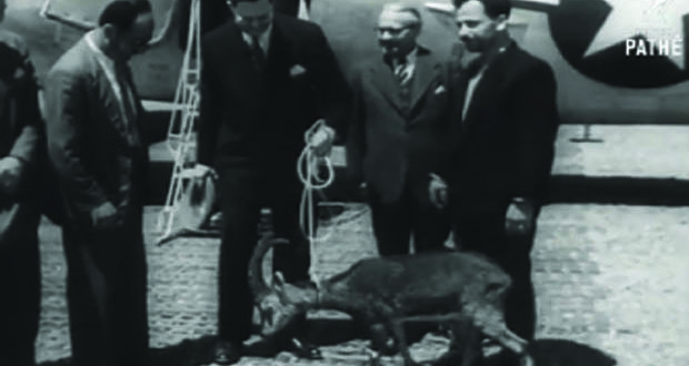 Ο αίγαγρος κατά την άφιξή του στο αεροδρόμιο το 1950