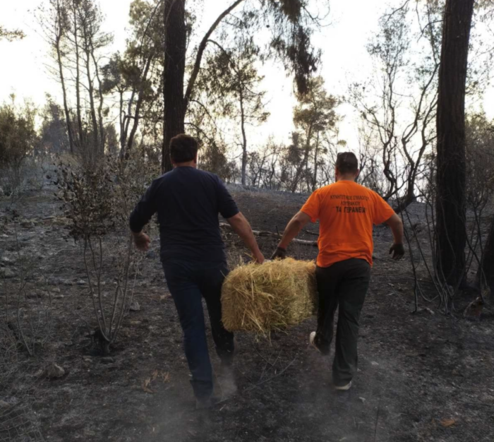Αμέσως μετά τη μεγάλη φωτιά στα Γεράνεια και στο πλαίσιο των φιλοθηραματικών δράσεων , μέλη του συλλόγου μοίρασαν σανό και τριφύλλι για τις πρώτες ανάγκες σε τροφή των άγριων ζώων στις καμένες περιοχές. Τις επόμενες μέρες ακολούθησε και η τροφοδότηση με νερό σε αυτοσχέδιες ποτίστρες.