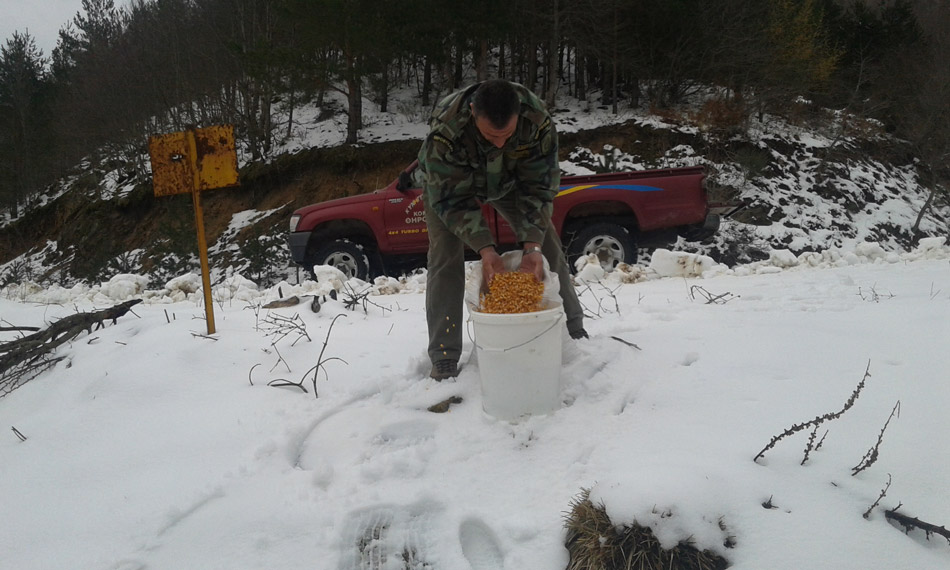 Μετά την έντονη χιονόπτωση των τελευταίων ημερών στο Νομό Ροδόπης ο Κυνηγετικός Σύλλογος Κομοτηνής προχώρησε στην ρίψη καλαμποκιού, διασκορπίζοντας αυτό στον ορεινό όγκο, για την διατροφή των αγριόχοιρων και άλλων θηραμάτων, συμβάλλοντας στη διατήρηση και αύξηση των θηραματικών πληθυσμών.