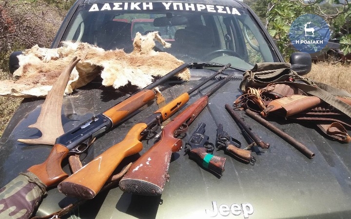 Σε έλεγχο που έγινε εντός του σπιτιού του 70χρονου σε χωριό της δυτικής πλευράς της Ρόδου, βρέθηκαν όπλα και πιστόλια με σιγαστήρα, κυνηγετικά όπλα, ειδικά δόκανα ακινητοποίησης μικρών και μεγάλων ζώων, τρίχωμα από ελάφια, πόδια αετών κ.α.