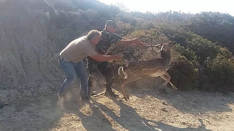 «Πάλευαν μεταξύ τους, είχαν μπλεχτεί τα κέρατα τους και είχαν μπλεχτεί και στα δίκτυα. Σήμερα στην Απολακκιά. Τα απελευθερώσαμε και τα δύο», γράφει στο προφίλ του στο Facebook ο Σταμάτης Χουρδάκης.