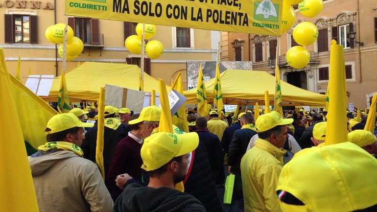 «Καλό αγριογούρουνο είναι αυτό που τρώγεται με πολέντα», «Αν αγαπάς τα αγριογούρουνα, να τα πάρεις στο σπίτι σου», έγραφαν τα πλακάτ που κρατούσαν οι συγκεντρωμένοι, οι οποίοι ανταποκρίθηκαν στο κάλεσμα της ένωσης αγροτών Coldiretti.