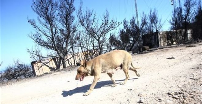 Η πρόσφατη φωτιά στον Υμηττό, πέρα από υλικές ζημιές, απείλησε και την ζωή πολλών ζώων που υπήρχαν στην περιοχή. Η ηρωίδα-σκυλίτσα ήταν κρυμμένη σε ένα από τα κτήρια που απειλούνταν από την φωτιά και όπως φαίνεται είχε κρύψει τα μικρά της σε μια τρύπα για να τα προστατεύσει.