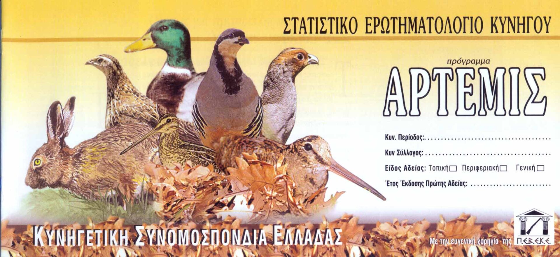Το Πρόγραμμα Άρτεμις είναι το διαβατήριο για το μέλλον του κυνηγιού στην χώρα μας και πρέπει όλοι μας να κατανοήσουμε την σημασία του, έντυπα υπάρχουν στα γραφεία του Συλλόγου όσοι επιθυμούν ακόμη και τώρα μπορούν να συμπληρώσουν.