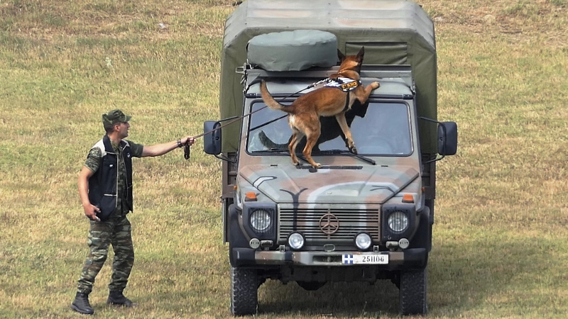 Τη σκληρή εκπαίδευση των στρατιωτικά εκπαιδευμένων σκύλων και των συνοδών τους, πιστοποίησε η άσκηση που έγινε για πρώτη φορά στις ένοπλες δυνάμεις, στο πεδίο Ασκήσεων Λιτοχώρου.