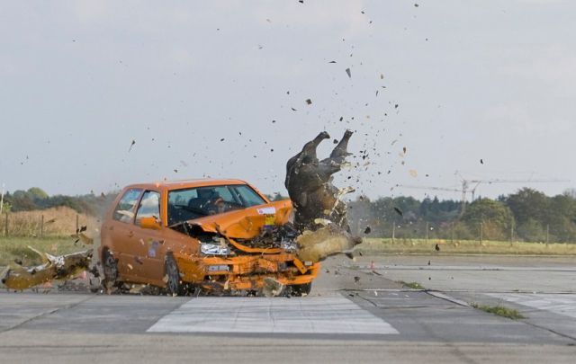 Ο οδηγός παρότι φρέναρε δεν γλύτωσε τη σφοδρή σύγκρουση με το μεγαλόσωμο ζώο.