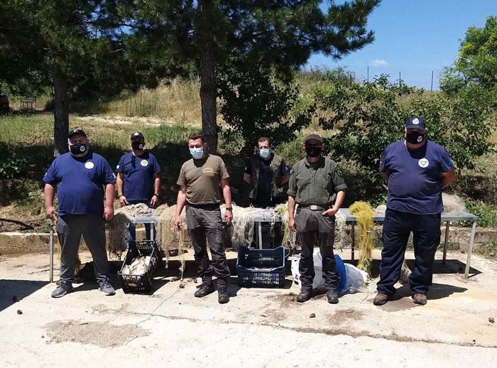 Λίγη ώρα αργότερα, σε έλεγχο που έκαναν σε δύο άτομα, κατά την απομάκρυνσή τους από το ποτάμι, διαπιστώθηκε, ότι μετέφεραν δίχτυα συνολικού μήκους 90 μέτρων, που νωρίτερα τα είχαν χρησιμοποιήσει