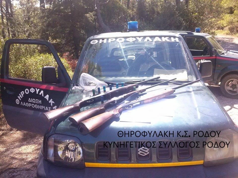 Την Κυριακή 27/09/2015 άνδρες της θηροφυλακής του Κ.Σ.Ρόδου μαζί με θηροφύλακες της Κυνηγετικής Ομοσπονδίας Κρήτης και Δωδεκάνησου συνέλαβαν δυο βοσκούς ,έναν σε δασική περιοχή στο Βάτι να μεταφέρει παράνομα και χωρίς άδεια κυνηγετικό όπλο που στη θαλάμη έφερε φυσίγγιο εννιάβολο που χρησιμοποιείται για το κυνήγι μεγάλων θηραμάτων.