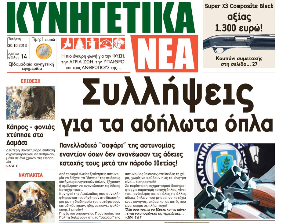 Αυτά και άλλα πολλά στα ΚΥΝΗΓΕΤΙΚΑ ΝΕΑ που κυκλοφορούν αύριο 30 Οκτωβρίου 2013.