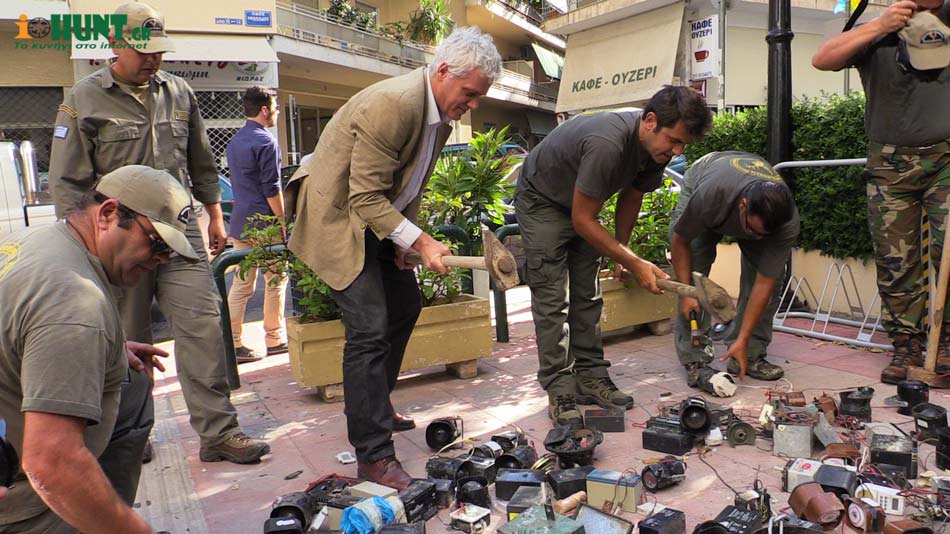 Πραγματοποιήθηκε εχθές στο προαύλιο του υπουργείου ΠΑΠΕΝ εκδήλωση στην οποία ο αναπληρωτής υπουργός ΠΑΠΕΝ κατέστρεψε συμβολικά ηλεκτρονικούς κράχτες που κατάσχεσαν οι ομοσπονδιακοί θηροφύλακες της Γ΄Κυνηγετικής Ομοσπονδίας Πελοποννήσου. Η εκδήλωση πραγματοποιήθηκε στα πλαίσια της καλής συνεργασίας του προέδρου της Κυνηγετικής Ομοσπονδίας Πελοποννήσου κ. Μαρκόπουλου με τον κ. Τσιρώνη.