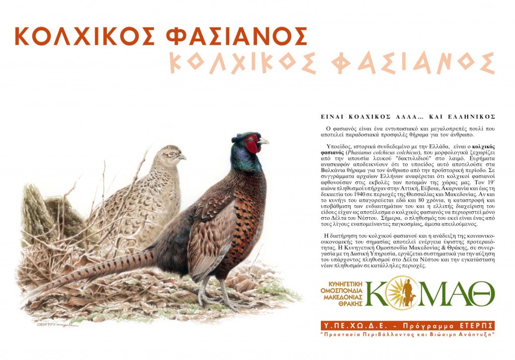Η Κυνηγετική Ομοσπονδία Μακεδονίας – Θράκης (ΣΤ’ ΚΟΜΑΘ) συνεχίζοντας τις δράσεις της για την προστασία του κολχικού φασιανού και την ανάδειξη της σημασίας του είδους έχει αναπτύξει δράσεις συνεργασίας με διεθνείς οργανισμούς.