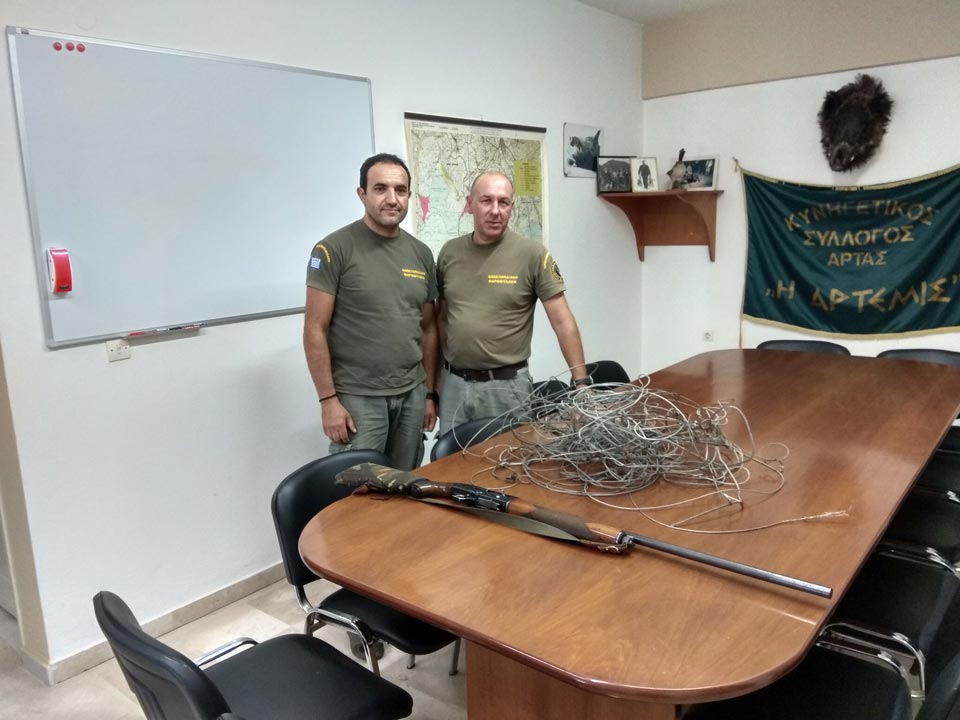 Ειδικότερα έπειτα από επιτήρηση δυο ημερών εντοπίστηκε ημεδαπός να πηγαίνει σε διαφορετικά σημεία και να ελέγχει τις θηλιές που είχε τοποθετήσει παράνομα για τη σύλληψη αγριόχοιρων. Επίσης μπροστά και πίσω από τις θηλιές βρέθηκε καλαμπόκι για να προσελκύει τους αγριόχοιρους.