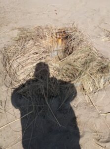 Εκεί, περί ώρα 10.30, εντόπισαν στην θέση «Αντλιοστάσιο» μεγάλο αριθμό πλαστικών ομοιωμάτων υδρόβιων πτηνών, μέσα και έξω από την θάλασσα, καθώς και ειδικά διαμορφωμένες φυλάχτρες που ήταν φτιαγμένες μέσα στην άμμο, πολύ κοντά στην ακτή.