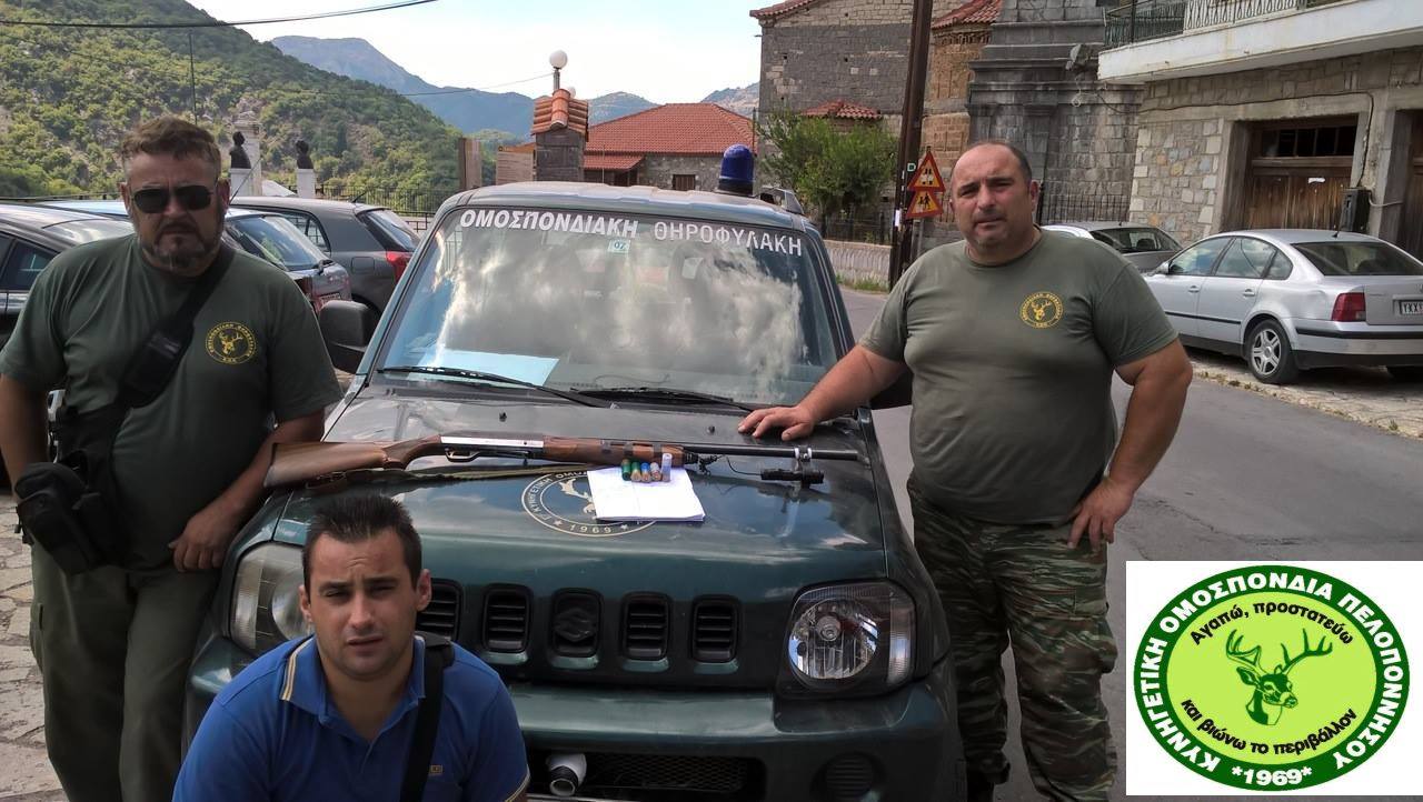 Την Παρασκευή 5 Αυγούστου 2016 οι Θηροφύλακες της Κυνηγετικής Ομοσπονδίας Πελοποννήσου Καγιούλης Δημήτριος, Παναγιώτου Γεώργιος και Χριστόπουλος Χαράλαμπος, με περιοχή ευθύνης τους Κυνηγετικούς Συλλόγους Δημητσάνας, Ανδρίτσαινας και Τροπαίων αντίστοιχα, αξιοποιώντας σχετικές καταγγελίες για παράνομη θήρα αγριόχοιρου το βράδυ στο καρτέρι, στην περιοχή του Αγ. Ιωάννη Ηραία Αρκαδίας και ύστερα από παρακολούθηση εντόπισαν ένα άτομο να κάνει χρήση προβολέα φωτίζοντας τα γύρω χωράφια.