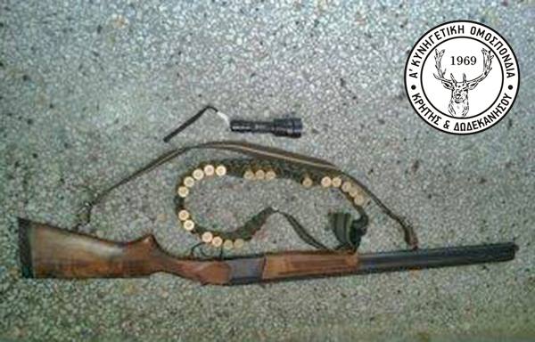 Τη νύχτα της 31ης Οκτωβρίου, Ομοσπονδιακοί Θηροφύλακες των Χανίων, στη διάρκεια της περιπολίας τους σε δασικές εκτάσεις του Ανατολικού Σελίνου, αντιλήφθηκαν, σε περιοχή έξω από τον οικισμό Αργαστήρι, Δήμου Καντάνου-Σελίνου, δέσμη φωτός από προβολέα και προέβησαν στη σύλληψη ενός ατόμου, το οποίο έφερε, εκτός του προβολέα, ένα δίκαννο και μια φυσιγγιοθήκη με 19 φυσίγγια, τα οποία και κατασχέθηκαν.